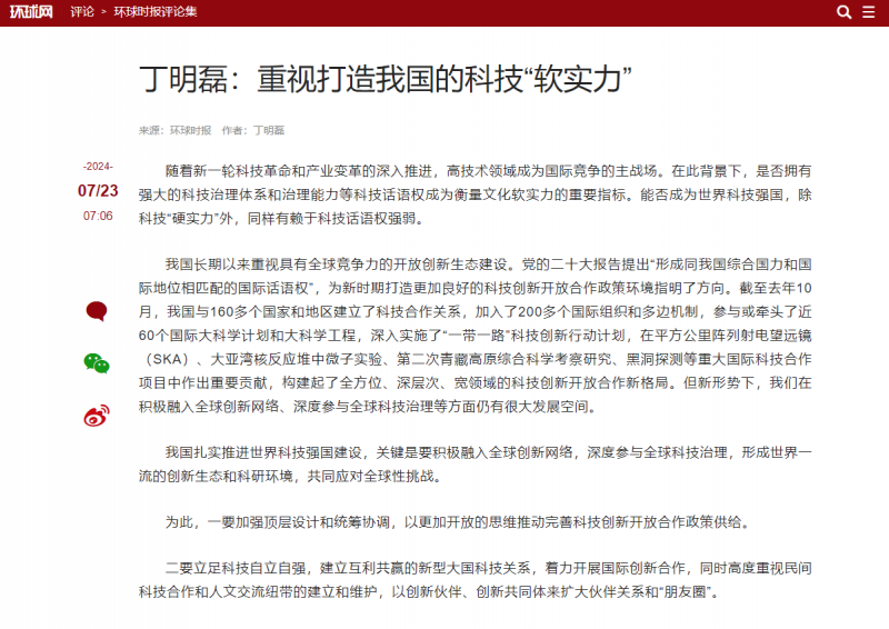 随着新一轮科技革命和产业变革的深入推进,高技术领域成为国际竞争的主战场。在此背景下,是否拥有强大的科技治理体系和治理能力等科技话语权成为衡量文化软实力的重要指标。能否成为世界科技强国,除科技“硬实力”外,同样有赖于科技话语权强弱。