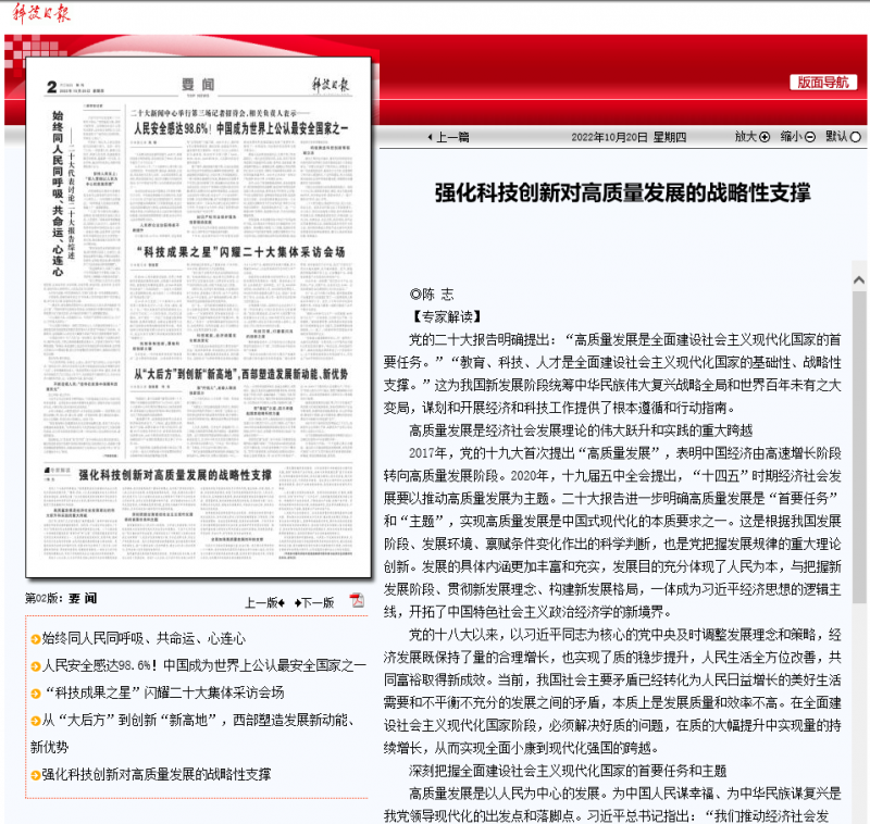日期:2022-10-20 来源:科技日报(要闻)2022年10月20日